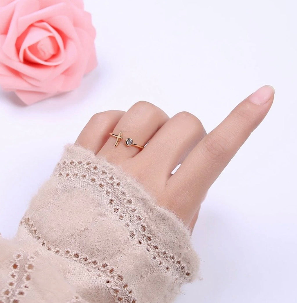 A delicate expression of faith, this radiant open ring features a polished cross and soft shimmer, crafted in a luminous 16K gold-filled finish for lasting elegance. Designed for the woman who embodies grace, confidence, and divine femininity.